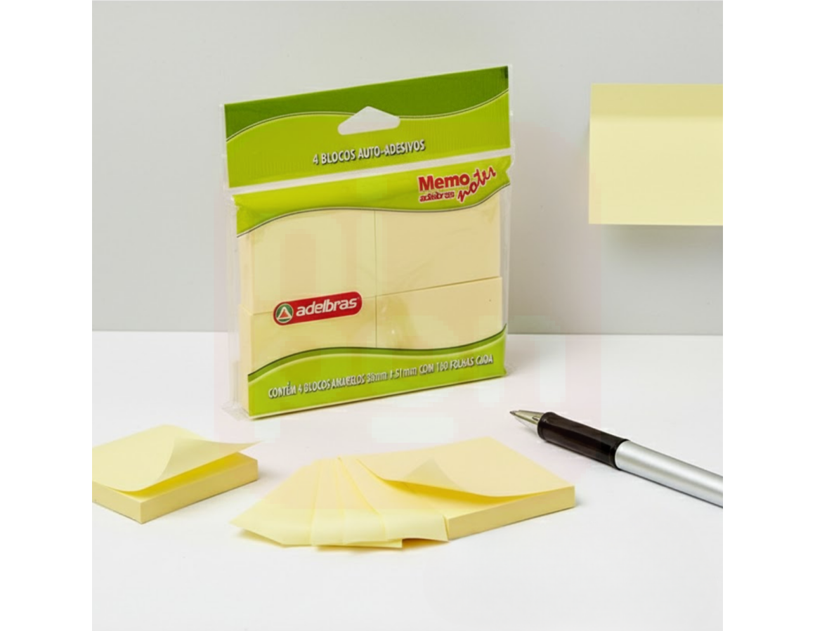 Mantenha suas anotações sempre à mão com o Post-it Adelbras 38x51mm, ideal para recados rápidos, lembretes e organização do dia a dia. Com 4 blocos de 100 folhas cada, em um vibrante tom amarelo, este produto garante alta visibilidade das informações e excelente aderência em diversas superfícies, sem deixar resíduos. Compacto e prático, é perfeito para uso em escritórios, escolas, home office ou em qualquer ambiente que exija agilidade e organização. Fabricado pela Adelbras, referência em qualidade e inovação em materiais de papelaria.