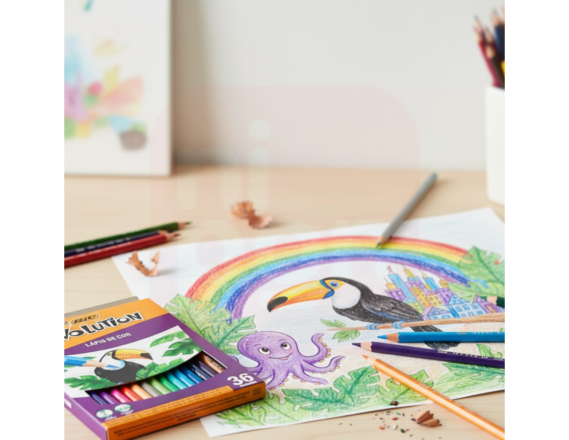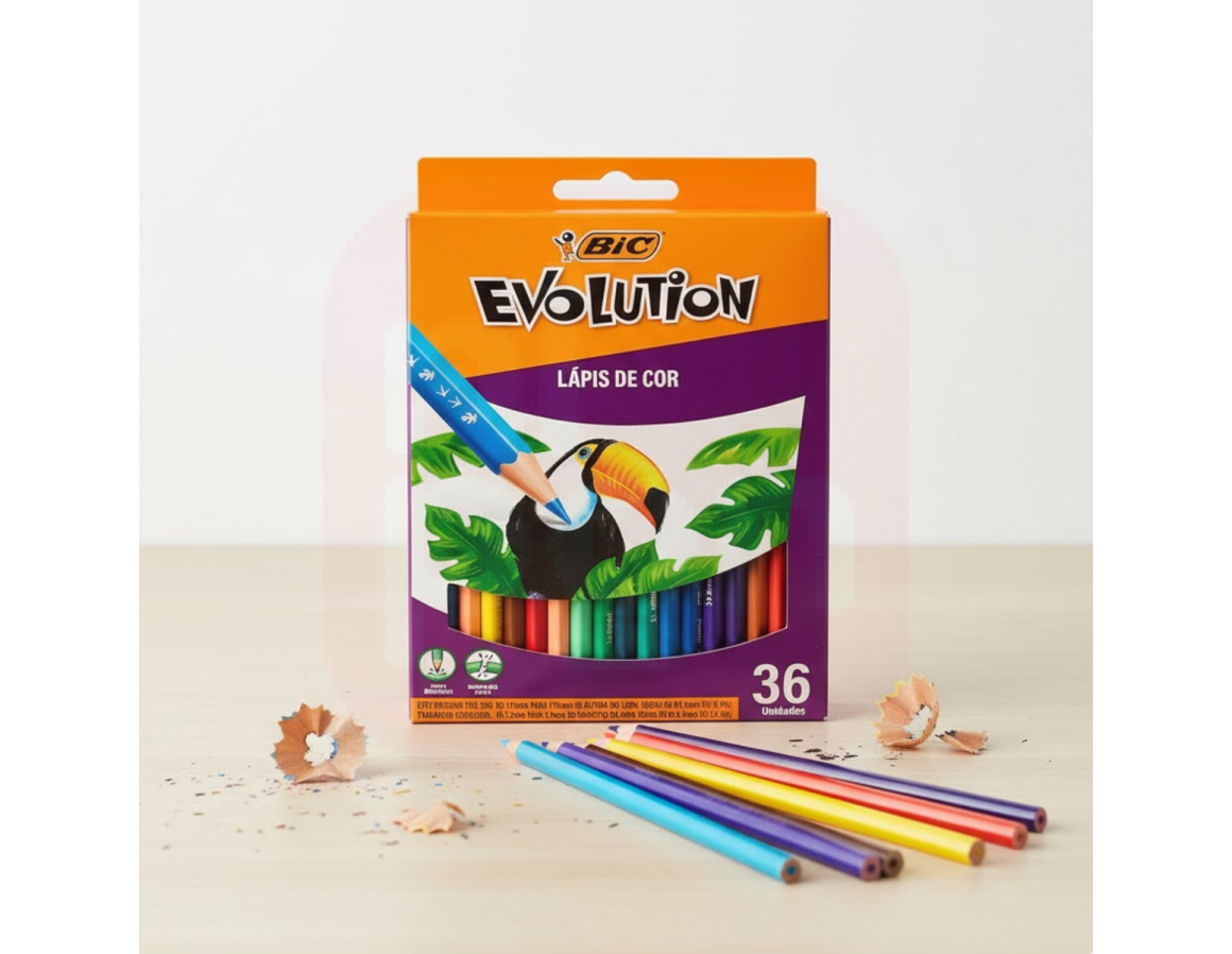 O Lápis de Cor Sextavado Evolution 36 Cores da BIC é a escolha perfeita para quem busca qualidade, resistência e uma explosão de criatividade! Fabricado com resina plástica, ele é mais resistente à quebra, não lasca ao apontar e garante segurança para crianças. Seu formato sextavado proporciona melhor pegada e controle, enquanto as 36 cores vivas e intensas permitem criações incríveis em desenhos, trabalhos escolares ou projetos artísticos. Um produto durável, seguro e com a excelência da BIC.